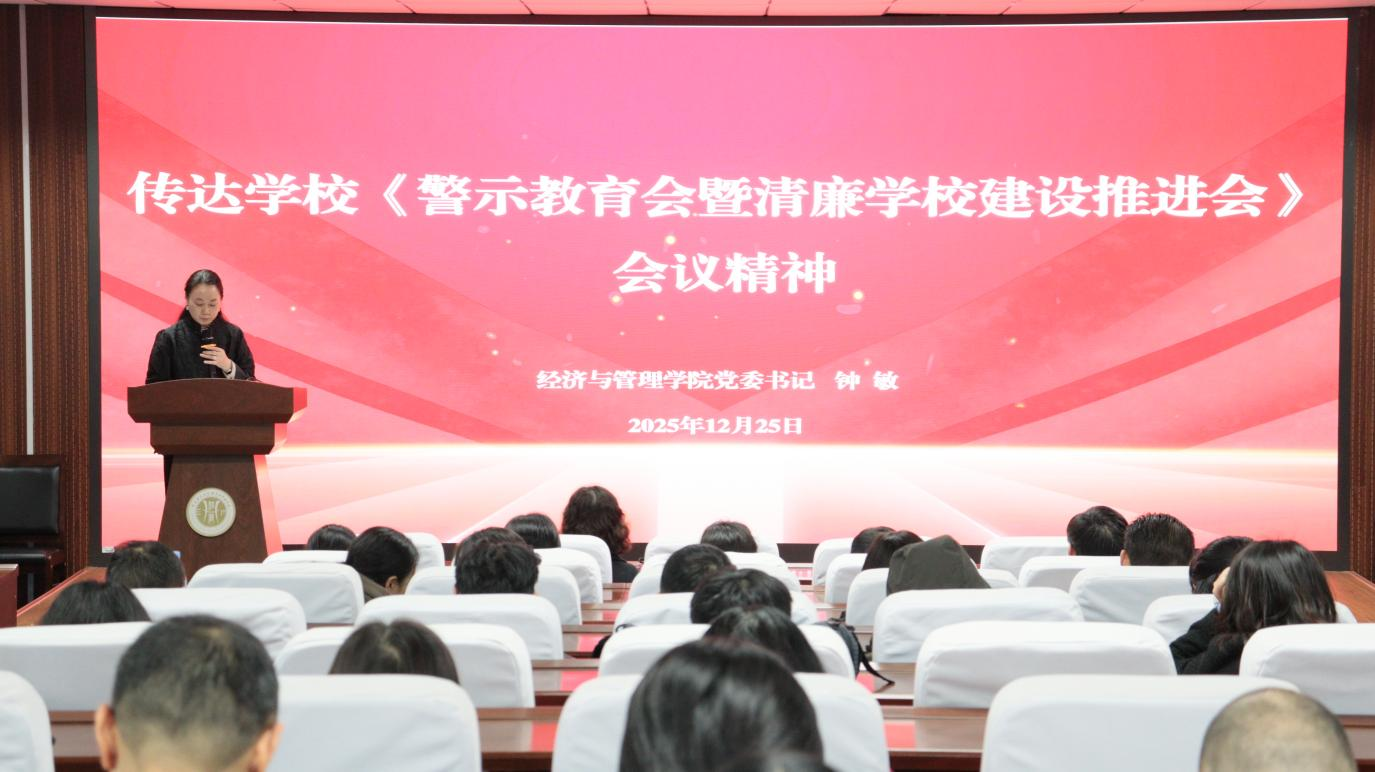 党委书记钟敏传达学校《警示教育会暨清廉学校建设推进会》的会议精神。她重点从师德师风、学生管理、科研经费使用及内部治理等方面的典型案例剖析,要求全体教职工以案为鉴,严守纪律底线,增强规范意识与责任担当。此外,她还传达了重庆市关于查处诬告陷害行为的相关文件精神,强调要规范检举控告秩序,保护教职工干事创业积极性,共同营造风清气正的政治生态环境。