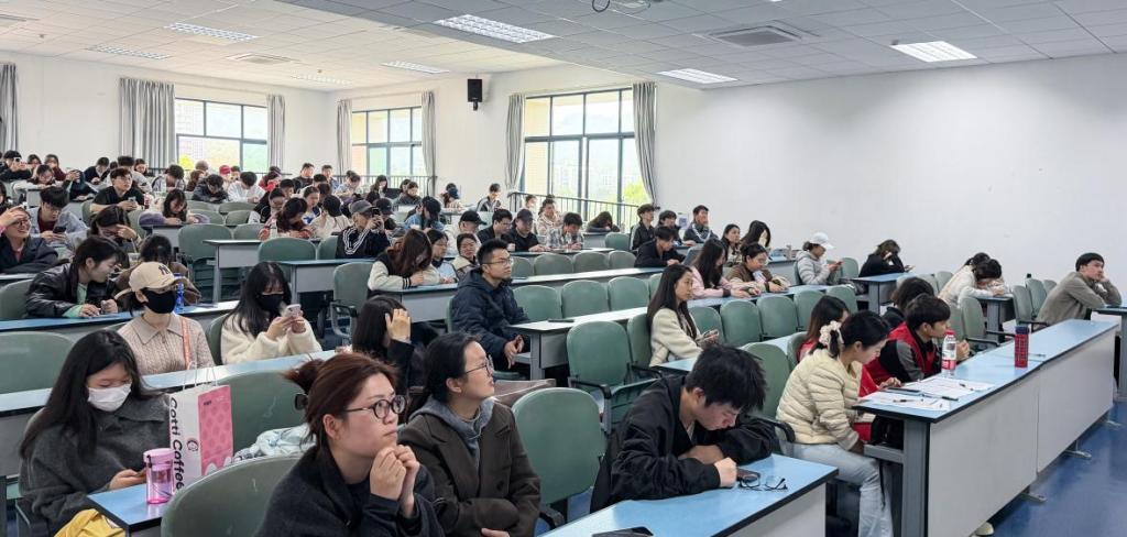 2023级数量经济学专业蔡扬、管理科学与工程专业李胤龙两位同学担任主讲人分享申博经验,2024级全体硕士研究生参与。